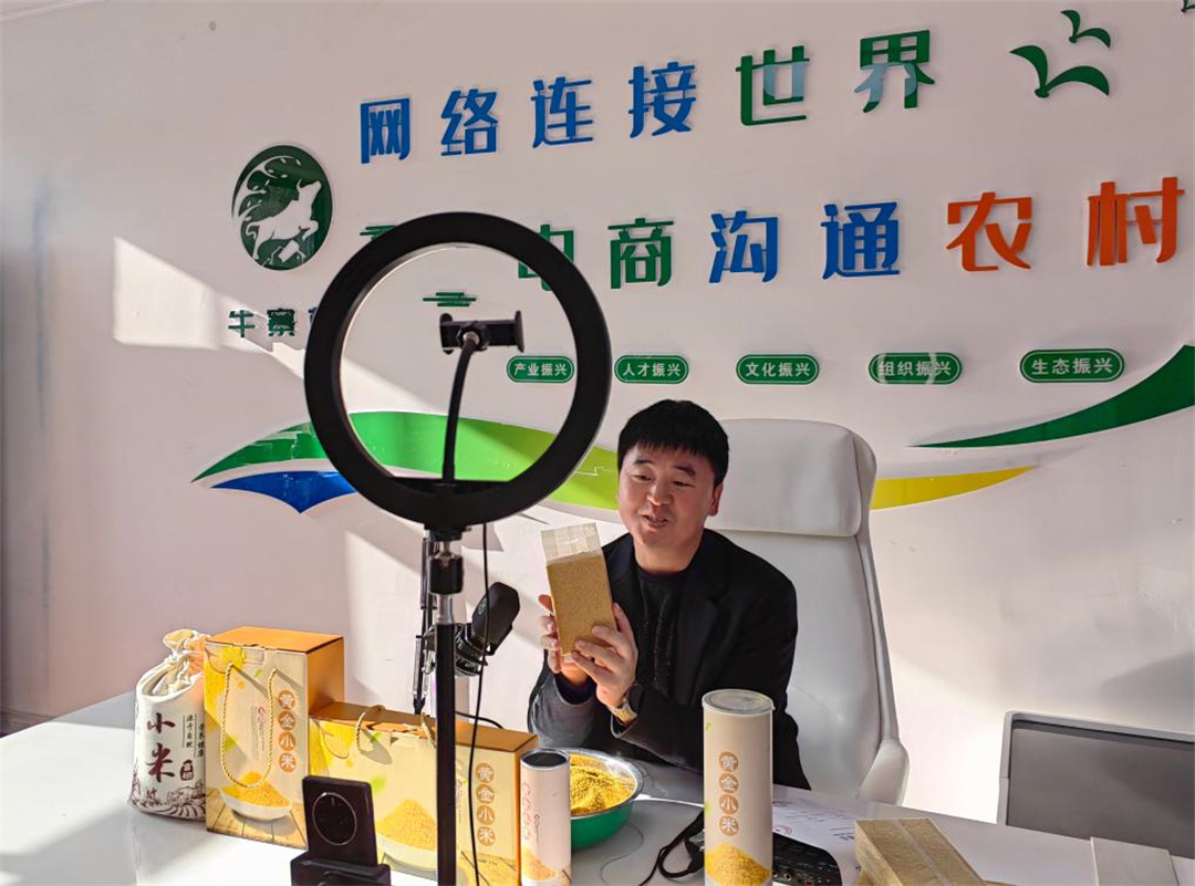 志丹县杏河镇牛寨村党支部书记张志亮正通过电商售卖小米。新华社记者孙正好 摄